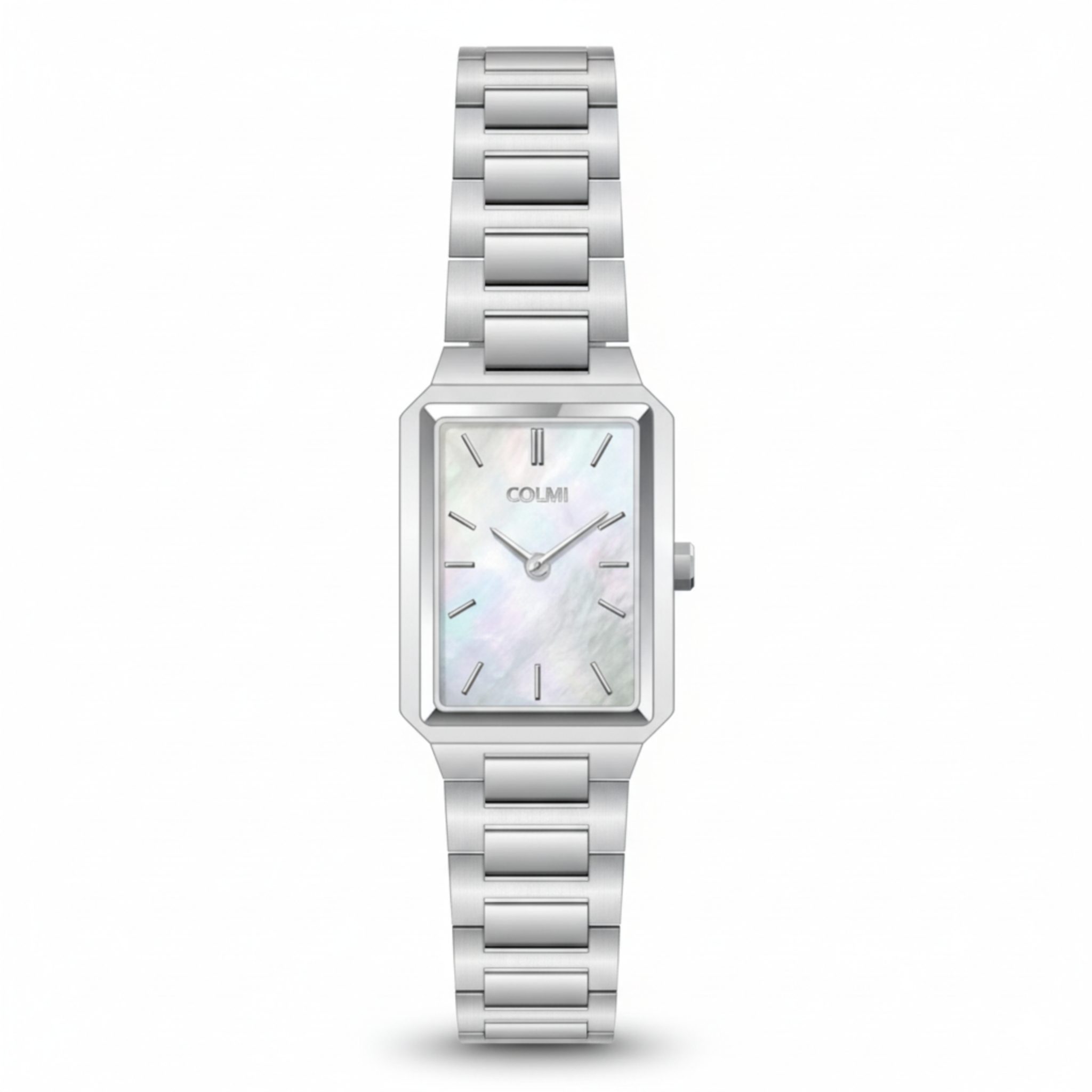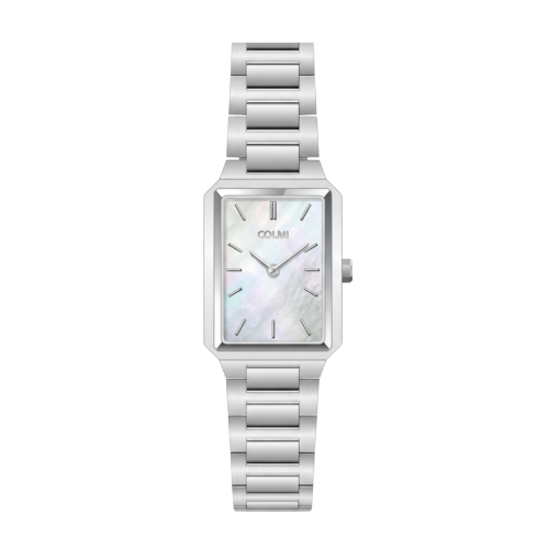 The Nyra Colmi Classic Range for Ladies brings a sleek, modern elegance with its polished silver stainless steel design and refined rectangular case. The mother-of-pearl dial adds a soft, luminous finish that shifts beautifully in the light, while the minimalist hour markers keep the look crisp and sophisticated. Slim, stylish and effortlessly luxurious, the Nyra is perfect for women who appreciate a contemporary take on timeless elegance.